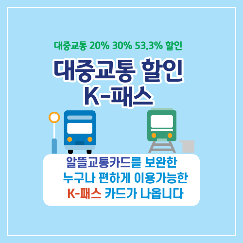기존 알뜰교통카드에서 K-패스로 전환되더라도 기존 알뜰교통카드 이용자는재발급 필요 없이 K-패스를 이용할 수 있도록 조치를 할 계획이며, 카드사 추가 할인까지 더해지면 이용료 대비 혜택비율을 많이 커질 수 있을 것 같습니다.