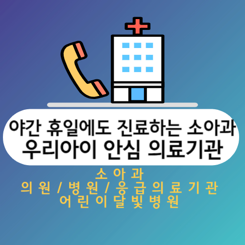 야간이나 휴일에 아프면 진료받기가 어려웠던 아이들을 이렇게 저녁에도 갈 수 있는 병원과 응급의료기관을 알아 두면 위급상황에서도 잘 대처를 하실 수 있으실 것 같습니다.