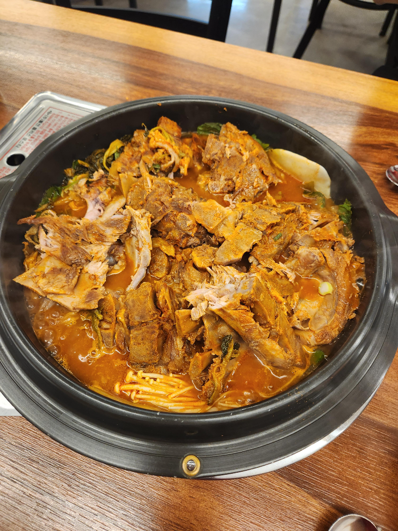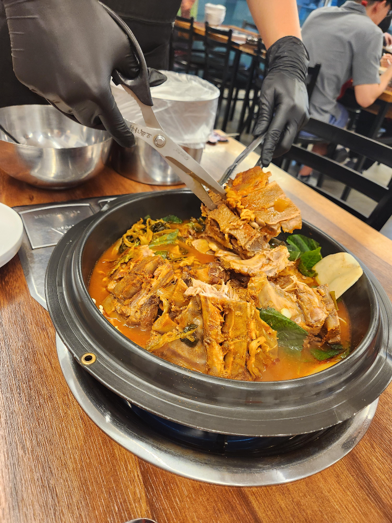 감자탕이 나오고 직원분이 직접 감자탕 손질을 해주셔서 편하게 먹을 수 있게 잘라주십니다.