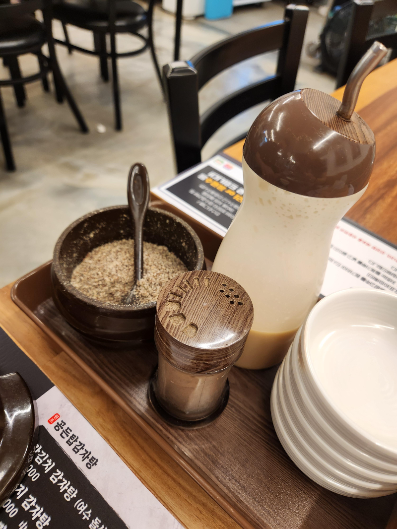 들깨가루와, 후추, 와사비장이 준비되어 있습니다.