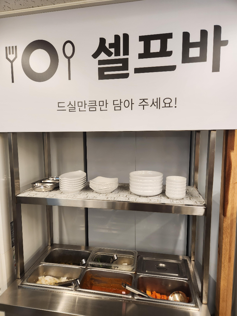 다 드시고 추가로는 셀프바에서 드실 만큼만 떠서 드시면 됩니다.