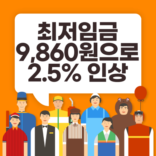 올해 시급 9,620원, 월급 201만 580원 보다 2.5% 높은 금액으로 내년 최저인금이 시급 9,860원, 월급 209시간 기준 2,060,740원으로 결정됐습니다.